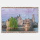 Painting of Bruges old town and Belfry tower with pink sky during sunset, Bruges, Belgium.