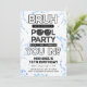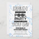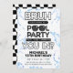 Dive into fun with our "Bruh Pool Party" Birthday Invitation! This design is bordered with splashes of water. The bold and distressed fonts are complemented by a pair of sunglasses for that ultimate chill vibe. The back of the invitation boasts a striking black and white chequered pattern. A trendy and stylish way to call all of the BRUHS to make a splash and have an unforgettable time! Pizza / cake / swimming - you in? Let's get the party started!