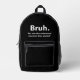 Bruh Typography Bruh Printed Backpack designed by Nisha Prabhu. Get ready to slay the style game with this bruh typography printed backpack. Perfect for carrying all your essentials, this backpack features a bold and eye-catching design that is sure to turn heads. Whether you're hitting the books or hitting the streets, this backpack is the perfect accessory to add some attitude to your look. Made from high-quality materials, this backpack is durable and built to last. So go ahead, grab yours today and let your style speak for itself. Bruh, you won't regret it!