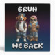 Get ready for the new school year with this fun and trendy “Bruh, We Back” design! Featuring an image of a young dog and cat, both looking super cool with their backpacks, backwards baseball hats, and sunglasses, this design is perfect for students who love pets and want to make a statement. Our stylish furry friends make it a great addition to any back-to-school collection.
