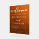 Suivez la tendance d'automne des tons terreux avec notre signe acrylique de bienvenue mariage de automne dégradé d'orange brûlé à brun. Une simple typographie blanche sur un arrière - plan rustique pour un look minimaliste. Les teintes bohémiennes qui rappellent l'argile de terre cuite mettent en valeur votre élégante calligraphie sur cette signalisation texturée à la mode.