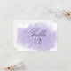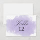 Cette carte de numéro de table présente une jolie brume de lavande à l'aquarelle. La couleur de fond et les champs de texte peuvent être personnalisés à votre goût.