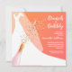 Brunch and bubbly bridal shower invitations feature a bride in her gown and veil on a graduated orange background with bottle of sparkling wine, glass flute and faux sequins with your details in chic white lettering. **TIP: Square size REQUIRES EXTRA POSTAGE. MORE colors in our collection.