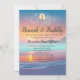 Brunch and Bubbly Bridal Shower Invitation features beautiful elegant pastel colours of the sunset on the beach. Turquoise blue, purple, and orange sunset ombre colours create an astounding blend of tropical shades for a beach, ocean, cruise or sunset bridal shower theme. Wonderful idea for planning a paradise beach shower at an island resort with this lovely design. Mountain silhouette, glistening sunrise sunset at dusk, with gentle waves and beach sand on the ocean shore, perfect for a destination, island, tropical paradise coastal nautical event. Share your coastal hawaii, california, caribbean island or tropical theme.