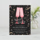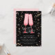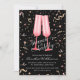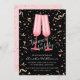 Brunch and bubbly bridal invitations with two pink champagne flutes on a black background with pink and gold confetti, perfect for a brunch or luncheon bridal shower. MATCHING items in our collection.
