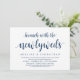 Moderne écriture en thème bleu marine classe, carte de faire-part de mariage en elopement (Brunch Avec Les Nouveaux Mariés). C'est parfait pour votre mariage en elopement décontracté au bord du lac, dîner, danse et fête.