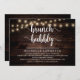 Modern Calligraphy Bridal shower invitation card (Brunch Bubbly), in rustic dark wood string lights design themed. Invite the guests with this perfect Invitation Card. Add your bridal shower details in matching wording.
