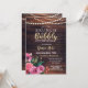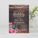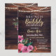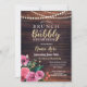 Brunch & Bubbly wood Pink floral invitation. Birthday Invitation. Back print included.
