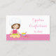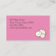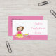 A sweet business card for a bakery or home-bakery business. The design features a brunette girl with chef hat rolling dough with a rolling pin. There are baking utensils on the pink border. The back is pink with colourful decorated cookies as an accent. Graphics by etsy.com/shop/Prettygrafikdesign.