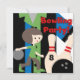 Boys having a bowling birthday party will love our customizable bowling theme invites that are easy to add your own party specifics to before ordering. A boy bowling, bowling shirt, bowling balls, and pins are featured on a bright and cheery invite sure to delight!