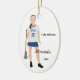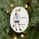 Celebrate the latest and best lacrosse player with this keepsake ornament. Customize to fit your athlete's information. The name, team and player details are included as a template or delete the text if not needed. Background and text colours can be changed if desired. Requests for specific colours, uniform styles, skin tones or hair colour are welcome if you contact the designer - Night Owl's Menagerie, original: 2018.