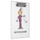 Un grand porte - bloc pour des infirmières, des caractéristiques une infirmière féminine d'une chevelure brune dans un uniforme pourpre avec le stéthoscope et un secteur que vous pouvez customiser ou laisser le blanc.