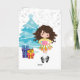 This adorable Irish Dance themed holiday card features a cute brunette Irish dancer in a yellow, pink, orange and green solo dress dancing in a winter wonderland complete with snow, a Christmas tree and gifts. The inside of the card features an easily customizable holiday greeting!