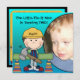 Un petit ouvrier du bâtiment aux cheveux bruns dans un casquette dur jaune avec un marteau et plusieurs autres ouvriers du bâtiment avec des zones que vous pouvez facilement customiser avec la photo de votre enfant et les détails de la fête d'anniversaire sur les invitations à l'anniversaire de Little Fix-It Man! Idéal pour les fêtes d'anniversaire de construction ou de charpentier !