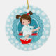 Brunette Spa Girl Bubbles Turquoise Red White Ceramic Ornament