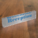 Metallic looking desk nameplate done in a brushed aluminum look. The bold blue text is ready to personalize to read anything you want. Great for any business.