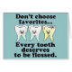 Don't choose favourites! Every tooth deserves to be flossed. Cool custom dental graphic by The Smile Emporium. Funny gifts for dentists, dental hygienists, dental assistants, dental students, periodontists, orthodontists, endodontists, prosthodontist and everyone else who appreciates good oral hygiene!