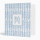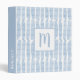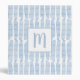 Colors include pastel blue, light blue and medium blue. The cover provides for a monogram and the spine contains a placeholder for the contents of the binder. Both the spine placeholder and the cover square and monogram can be deleted.