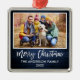 Modern Brush Script, Rustic Blue Wood Merry Christmas Family Photo Ornament