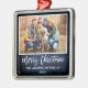 Brush Script Blue Wood Family Merry Christmas Metal Ornament