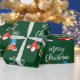 Modern Brush Script Merry Christmas Colourful Fun Watercolor Gnomes Wrapping Paper - Forest Green
