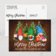 Modern Brush Script Merry Christmas Colourful Fun Watercolor Gnomes Postcard with Pine Trees. Family Name and Year - Rustic Country Wood