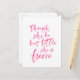 Stylish pink brush script of the quote "though she be but little she is fierce" from A Midsummer Night's Dream by William Shakespeare against a white background.