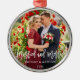 Modern Brush Script Married and Merry Photo Wedding Round Metal Ornament