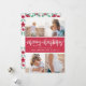 Red and white Christmas card with four of your photos in a modern and clean collage with square photos. Merry Christmas written in a charming font. The back features a pattern of poinsettias and berries.
