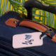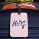 blush background with navy blue brush stroke script font "mrs" which you can customize further with your name or leave it as is. Choose between different colours and pair with "mr" luggage tag
