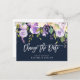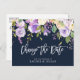brush script purple floral change the date postcard