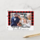 Brush Script Red Plaid Wedding Photo Christmas Postcard