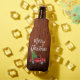 Brush Script Rustic Wood Red Truck Christmas Bottle Cooler