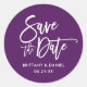 Modern Brush Script Save The Date Wedding Engagement Announcement Purple Envelope Seals