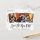 Modern Brush Script Save The New Date Wedding Postponed New Date Announcement Couple 3 Photo Postcard