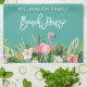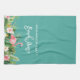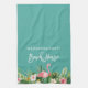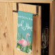 Modern Brush Script, Watercolor Tropical Floral, Pink Flamingo, Family Name Beach House Kitchen Towel
