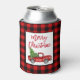 Brush Script Truck Red Plaid Christmas Can Cooler