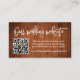Modern Brush Script. Minimalist Simple Wedding Website Enclosure Card with your QR Code. Photo Back. Rustic Country Wood Print.