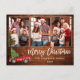 Modern Brush Script Rustic Wood 3 Photo Family Photo Merry Christmas Holiday Postcard. Watercolor Vintage Red Truck with Christmas Tree.