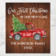 Modern Brush Script Our First Christmas in our New Home Holiday Wine Bottle Label includes Watercolor Vintage Red Truck with Christmas Tree - Rustic Country Wood
