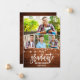 Modern Brush Script 4 Photo Graduation Announcement Card - Rustic Wood and String Lights