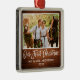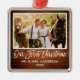 Modern Brush Script, Rustic Wood Our First Christmas Wedding Photo Ornament