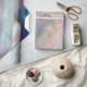 Pastel blue, teal, pink and gold with white brush stroke abstract pattern.