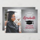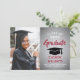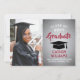 Announce a high school or college graduation and invite family and friends to celebrate with custom photo red, grey and white party invitations. The picture and wording are simple to personalize and the colours are easy to change with the Zazzle design tool. This template is set up as a combination announcement card and party invitation that can be customized with any details of your choice, such as parents' names, special honours, degree title, favourite inspirational quote, graduate's future plans or new address. The design features a faux brushed metallic background, a mortar board cap, elegant modern calligraphy, classic vintage typography and one favourite photo, such as a senior picture or an image from the commencement ceremony. Please note that silver is printed grey ombre colour, not metallic foil. This graduation card is a stylish way to announce a special day celebration. Congratulations to the graduate!