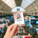 This modern name badge design can be customized with your business name and contact details as well as an employee photo and barcode.