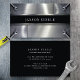 This brushed metal business card design offers a clean, industrial look that exudes strength and reliability. The metallic finish with rivet details is ideal for construction workers, engineers, mechanics, and other professionals in industrial trades. Its sturdy and bold appearance makes it perfect for men seeking a business card that reflects their solid work ethic and expertise.