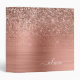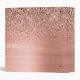 Brushed Metal Rose Gold Pink Glitter Monogram Binder