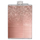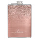 Brushed Metal Rose Gold Pink Glitter Monogram Hip Flask