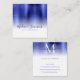 Brushed Metallic Navy Blue Monogram Elegant Script Square Business Card