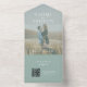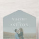 A modern photo wedding invitation with a coloured photo filter and traditional elegant typography.